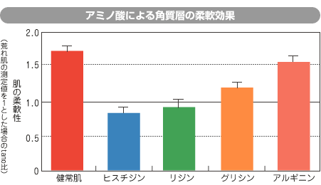 さて、アミノ酸のなかで硬くなった皮膚に柔軟性を与える能力に